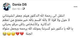 أخي العزيز هيثم. فراقك صعب علينا. موتك وجع قلوبنا لأنك كنت مثل نسمة حلوة تترك وراك ريح طيبة وين ما تروح. تركت اثر في قلوبنا و ما في كلمات تعطيك حقك و كل اشي انحكى فيك قليل. يا رب تكون مرتاح و مبسوط و خلصت من هموم الدنيا.